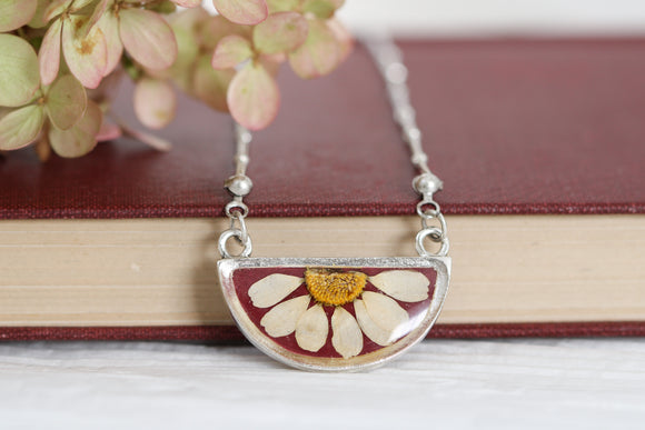 I have made a decision on this fall's new color, and it is burgundy! I will keep making the pieces in this collection for the rest of the year. Flowers featured are: feverfew, Queen Anne's lace, lily of the valley, and solidago.